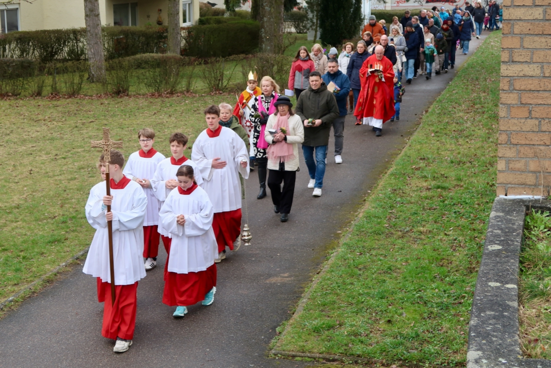 Im Anschluss zog die Gemeinde gemeinsam um die Kirche und erinnerte dabei an den Einzug Jesu in Jerusalem.