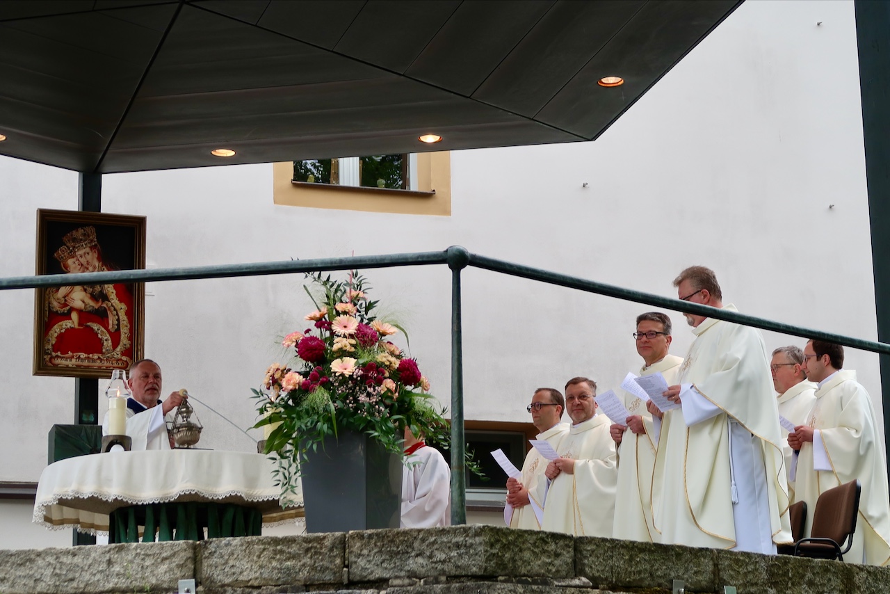 Die Pfarreien St. Martin, St. Georg, St. Michael und die Bergkirche haben gemeinsam den Feiertag Fronleichnam gefeiert. Die Prozession fiel buchstäblich ins Wasser.