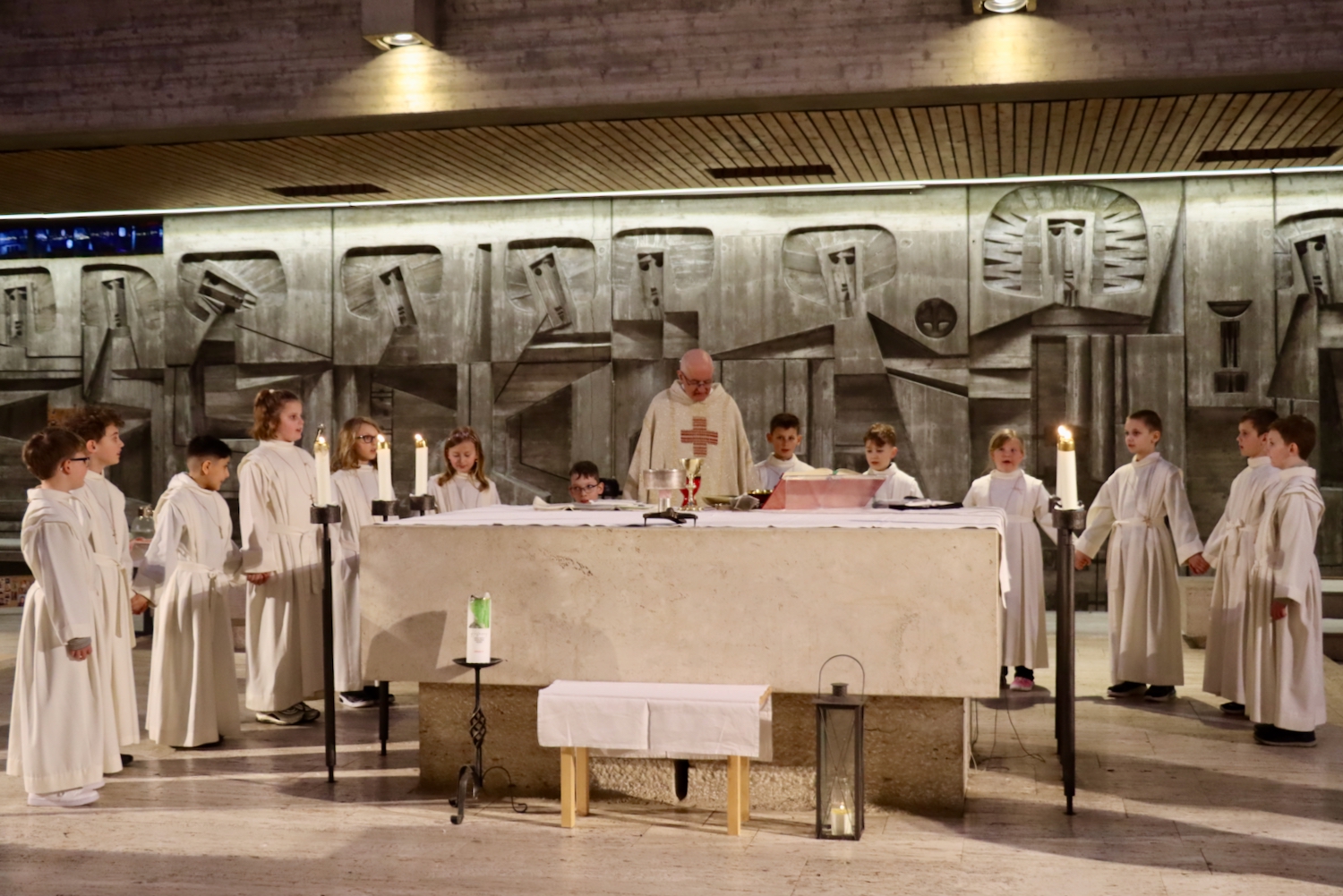 In unserer Pfarrei ist es gute Tradition, dass am Gründonnerstag auch die Kommunionkinder in den Gottesdienst eingebunden sind. Für sie bietet sich an diesem besonderen Tag eine zusätzliche Möglichkeit, erstmals den Leib Christi zu empfangen – bewusst in einem kleineren und besonders feierlichen Rahmen, ergänzend zum eigentlichen Kommunionfest, das in zwei Wochen gefeiert wird.