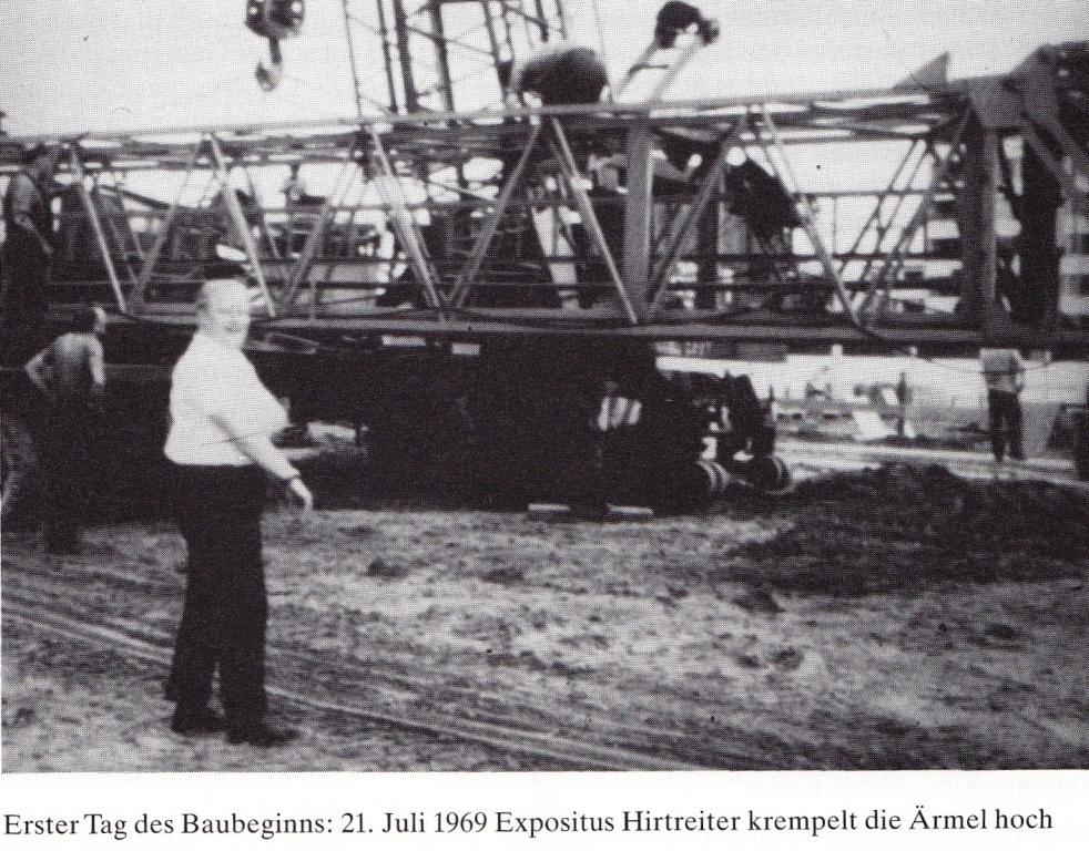 Am Tag der Mondlandung, am 21. Juli 1969, fiel der Startschuss für die Arbeiten zum 1. Bauabschnitt. Anfang November 1969 folgt die Grundsteinlegung der Kirche St. Michael und noch im selben Monat konnte Richtfest für den Rohbau der Kirche und für das Pfarrgemeindezentrums gefeiert werden.